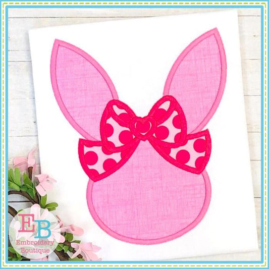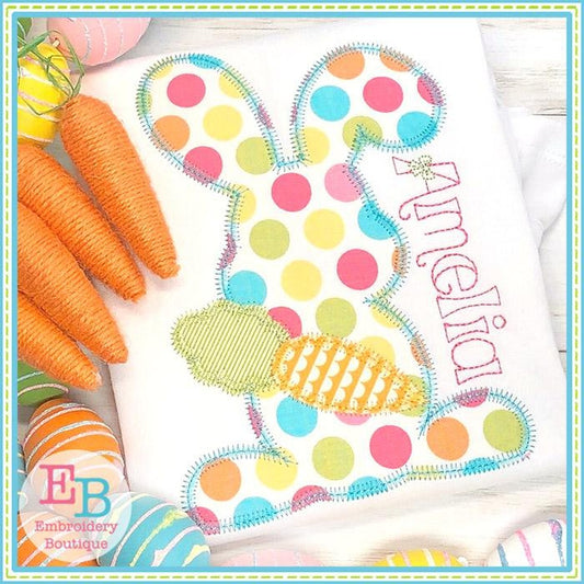 Bunny Silhouette with Flower Necklace Zigzag Applique