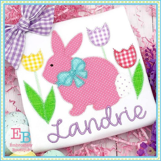 Bunny Bow with Tulips Applique