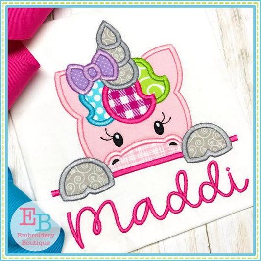 Unicorn Girl Peeker Applique