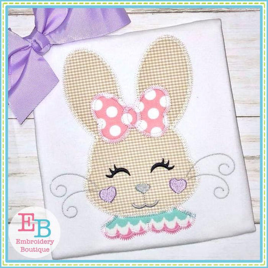 Sweet Lil Bunny Girl Face ZigZag Applique