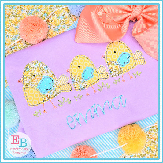 Three Chicks Bean Stitch Applique