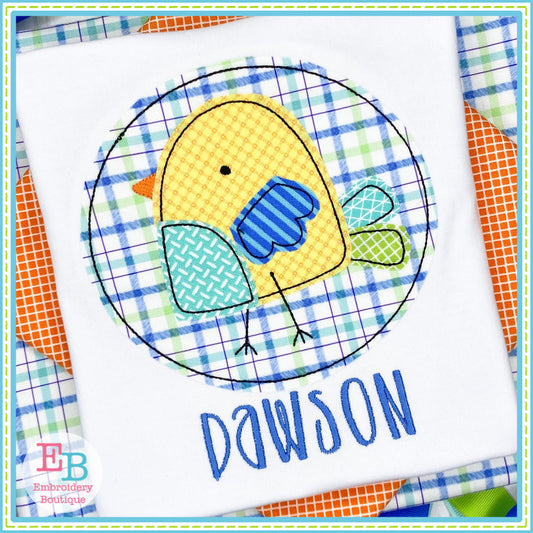 Boy Chick Circle Bean Stitch Applique