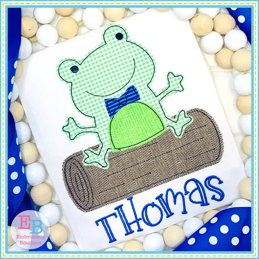 Boy Frog on Log Bean Stitch Applique