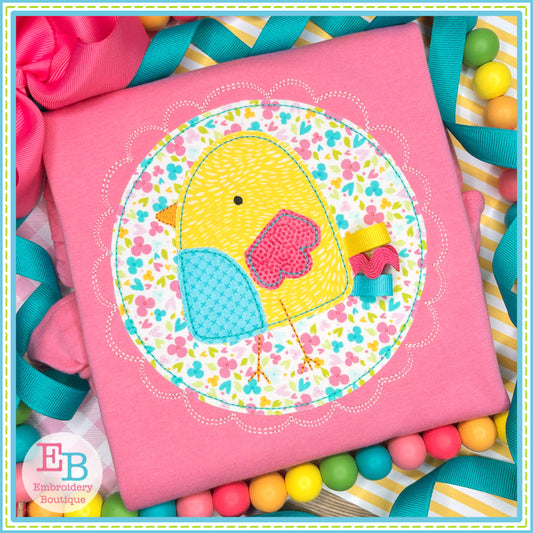 Girl Chick Circle Bean Stitch Applique (with and without ribbon tail)