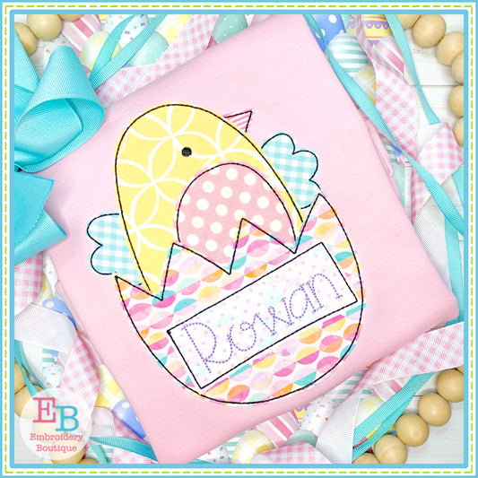 Chick Egg Banner Bean Stitch Applique