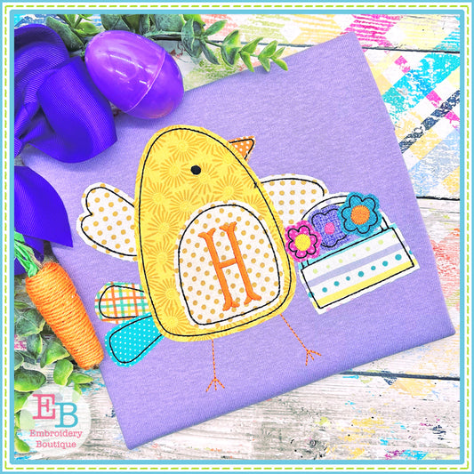 Chick Flower Basket Bean Stitch Applique