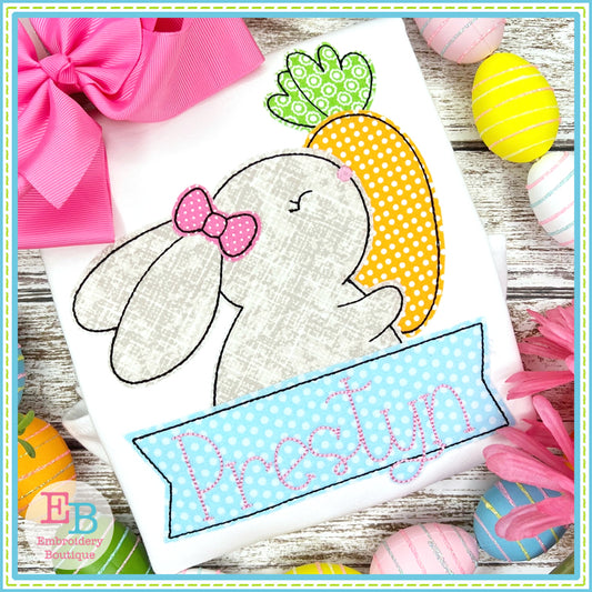 Girl Bunny Banner Bean Stitch Applique