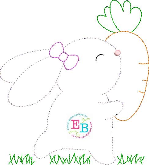 Girl Bunny Grass Bean Stitch Applique