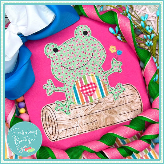 Girl Frog on Log Bean Stitch Applique