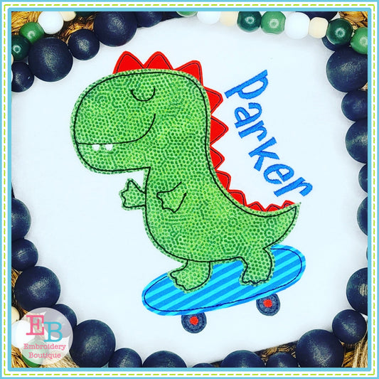 Skating Dino Bean Stitch Applique