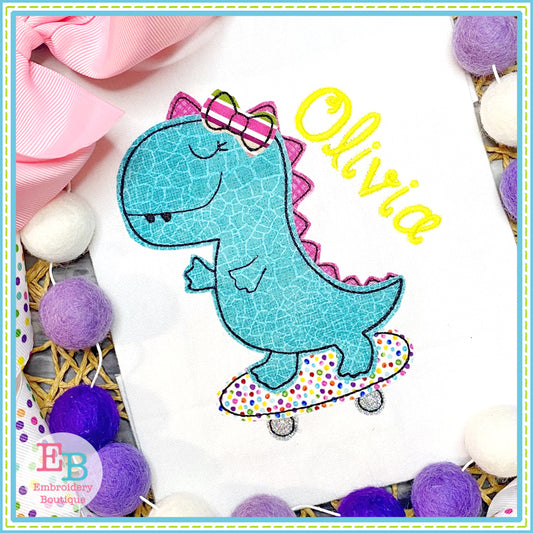 Skating Dino Girl Bean Stitch Applique