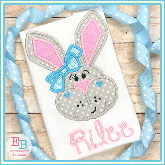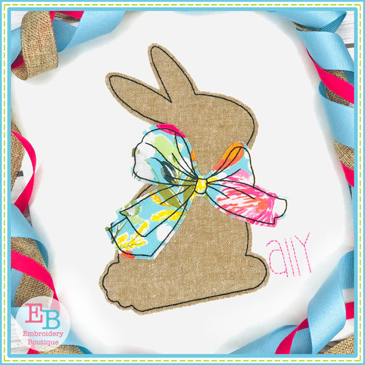 Simple Bunny Big Bow Bean Stitch Applique