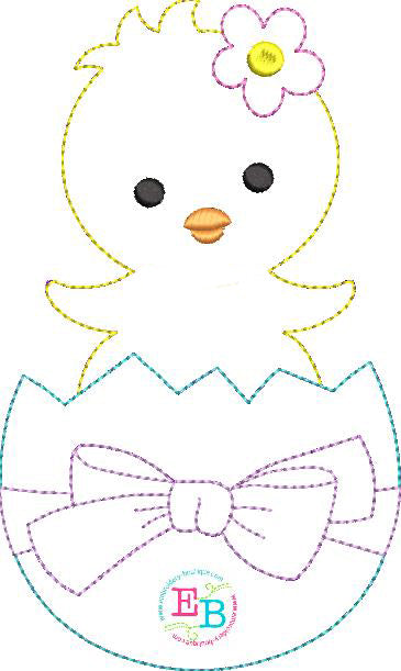 Chick Egg Bow Bean Stitch Applique
