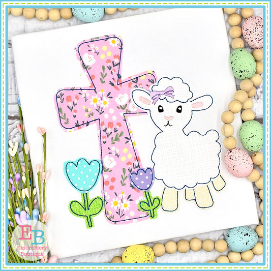 Lamb Cross Tulips Bow Bean Stitch Applique