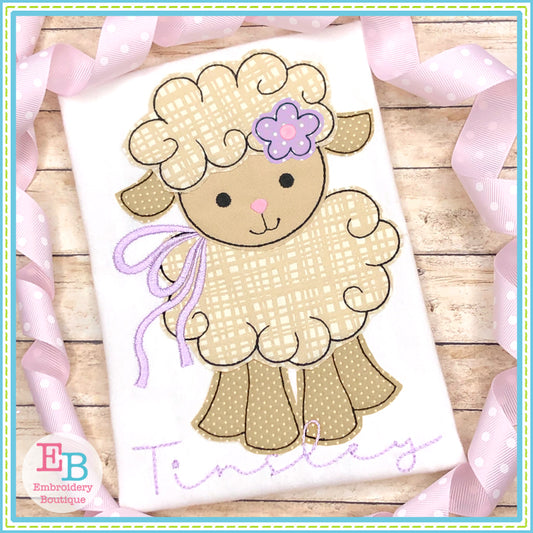 Lamb Bow 2 Bean Stitch Applique