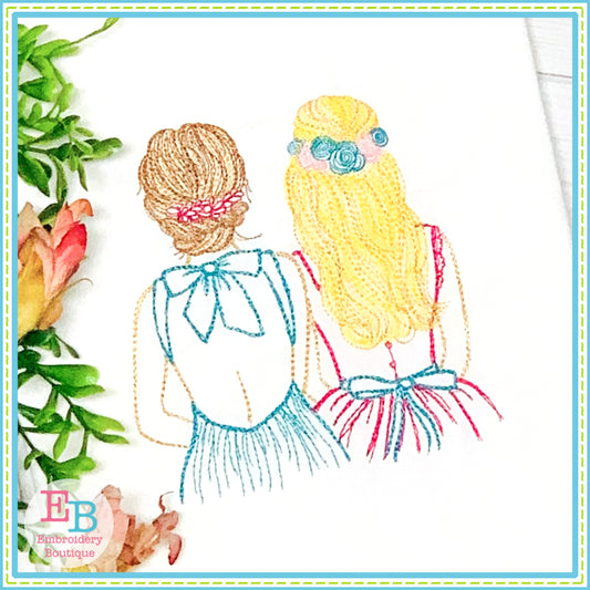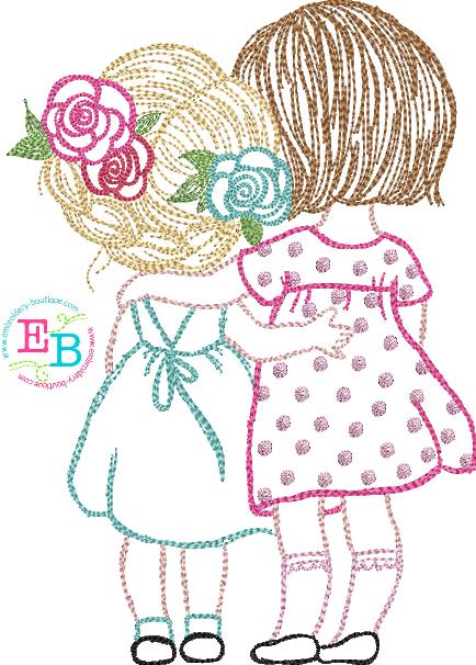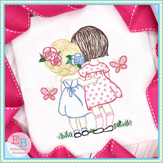 Girl Puppy Butterflies Watercolor Embroidery Design