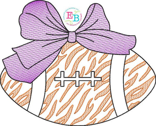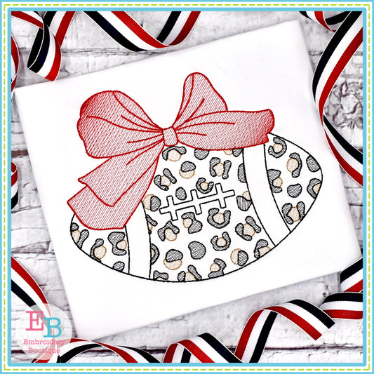 Football Big Bow Cheetah Sketch Embroidery Design