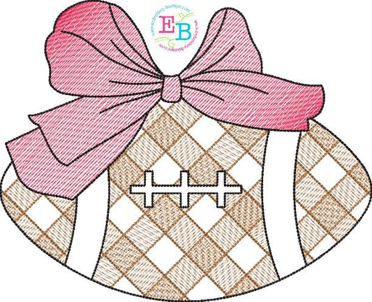 Football Big Bow Plaid Sketch Embroidery Design