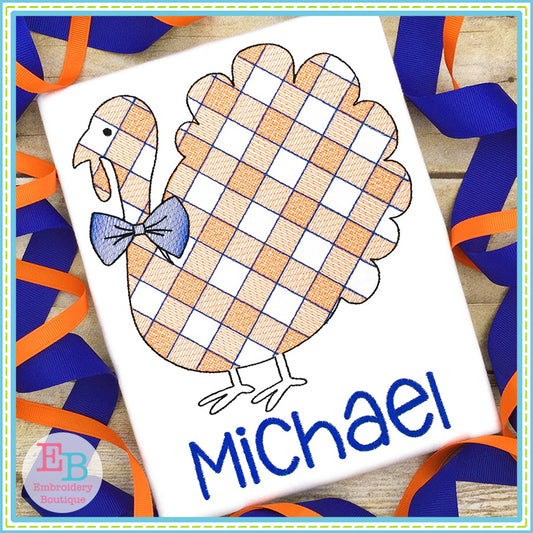 Turkey Big Bow Plaid Sketch Embroidery Design