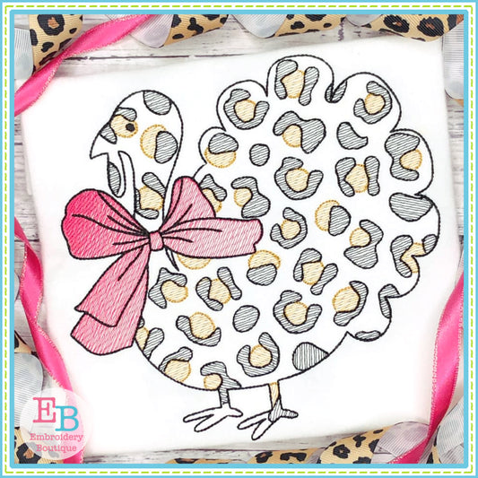 Turkey Cheetah Big Bow Embroidery Design