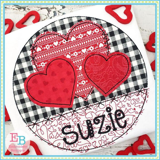 3 Hearts Circle Applique