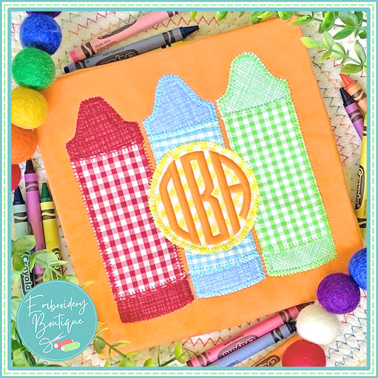 3 Crayons with Circle Zigzag Applique