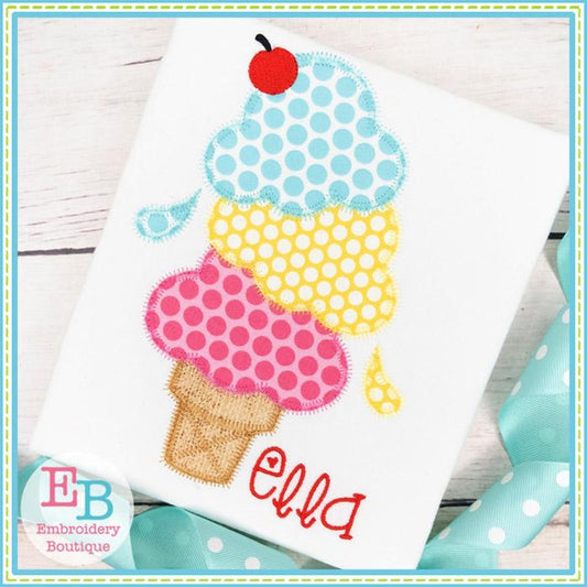 Triple Scoop Ice Cream Cone Applique