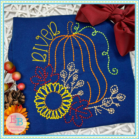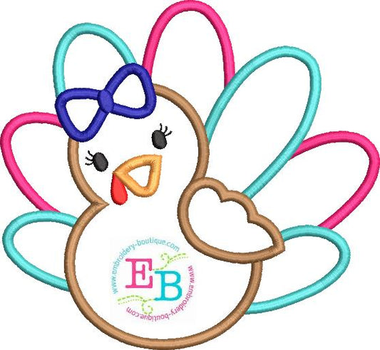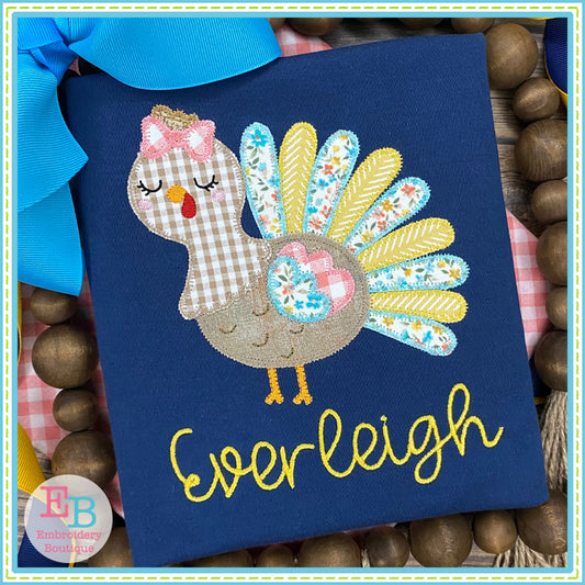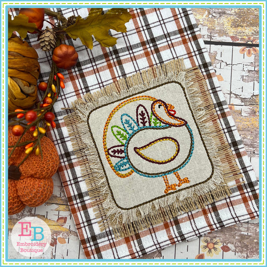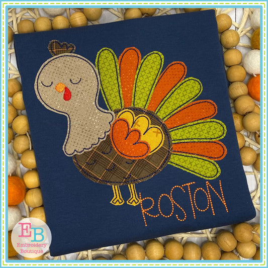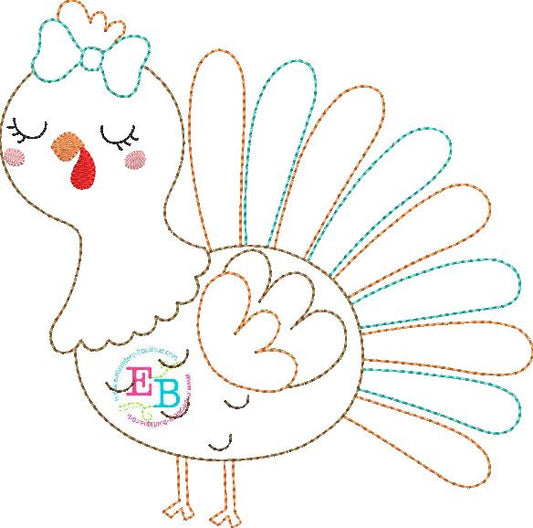 Turkey Big Bow Plaid Sketch Embroidery Design