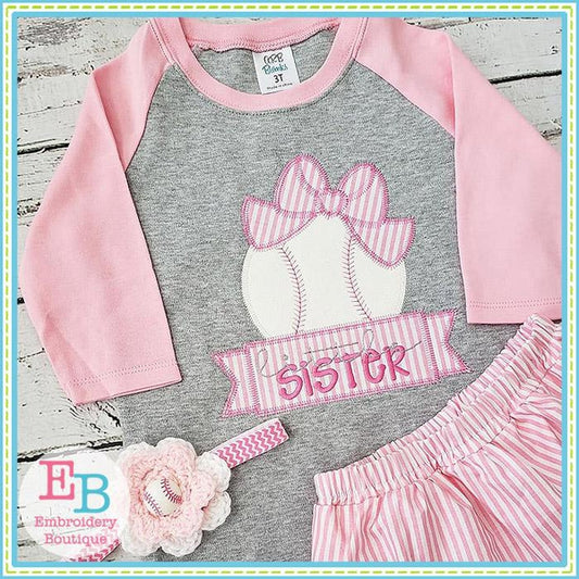 Baseball with Big Bow Zigzag Applique