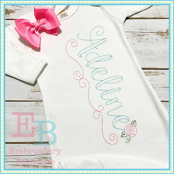 Our much anticipated and always admired Ballerina Vintage Embroidery Font is now available in 9 sizes. Zip file includes 1, 1.25, 1.5, 1.75, 2, 2.25, 2.5, 2.75 and 3 inch. Includes 26 capital letter and 26 lowercase letters, as well as rose and swirl embellishments.