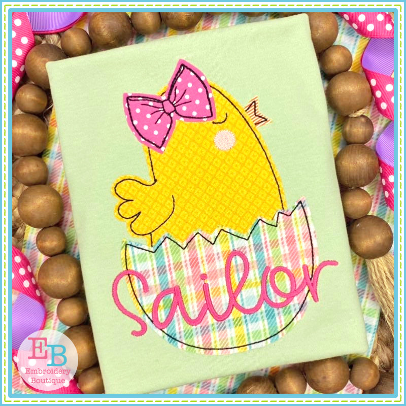 Chick Bow Egg Bean Stitch Applique