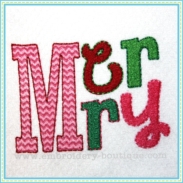 Comes in sizes for the 4x4, 5x7, 6x10, 8x8 and 8x11 hoops. 4x4 is a filled design and the remaing are all applique letters.